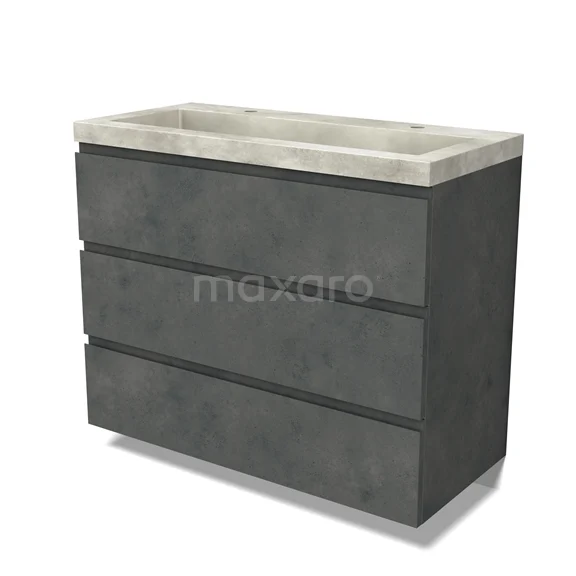 Modulo Bathroom furniture with sink | 100 cm Dark grey concrete Handle-less front Concrete 3 drawers