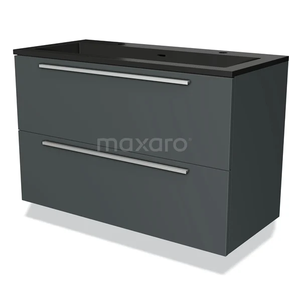 Modulo Bathroom furniture with sink | 100 cm Dark grey Flat front Quartz 2 Stacked drawers