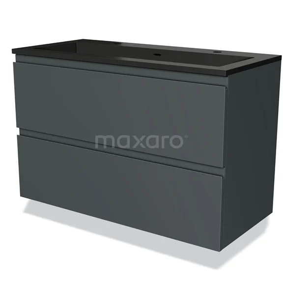 Modulo Bathroom furniture with sink | 100 cm Dark grey Handle-less front Quartz 2 Stacked drawers