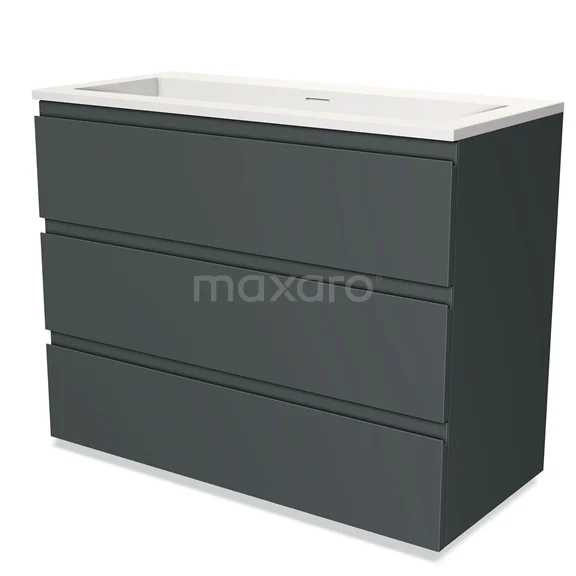 Modulo Bathroom furniture with sink | 100 cm Dark grey Handle-less front Solid surface 3 drawers