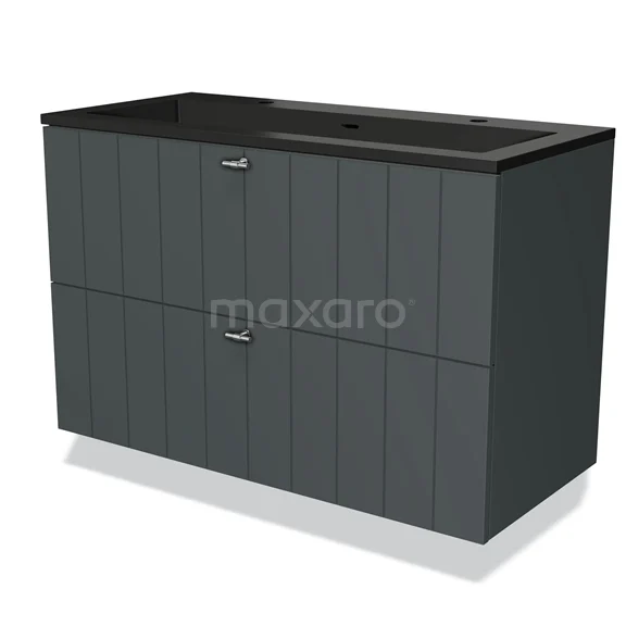 Modulo Bathroom furniture with sink | 100 cm Dark grey Slat front Quartz 2 Stacked drawers