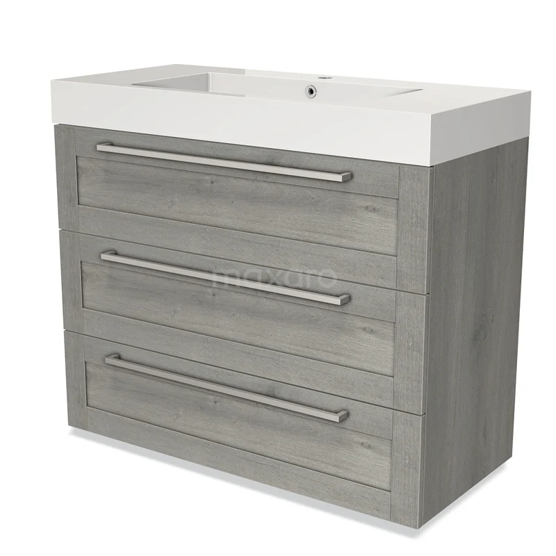 Modulo Bathroom furniture with sink | 100 cm Grey oak Bordered front Mineral marble 3 drawers