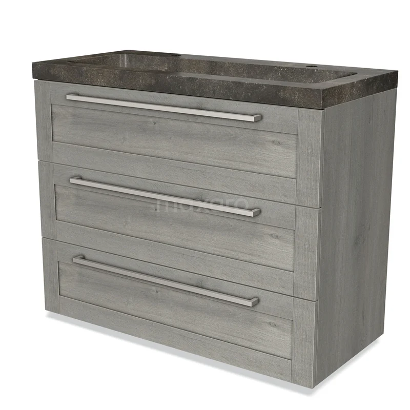 Modulo Bathroom furniture with sink | 100 cm Grey oak Bordered front Natural stone 3 drawers