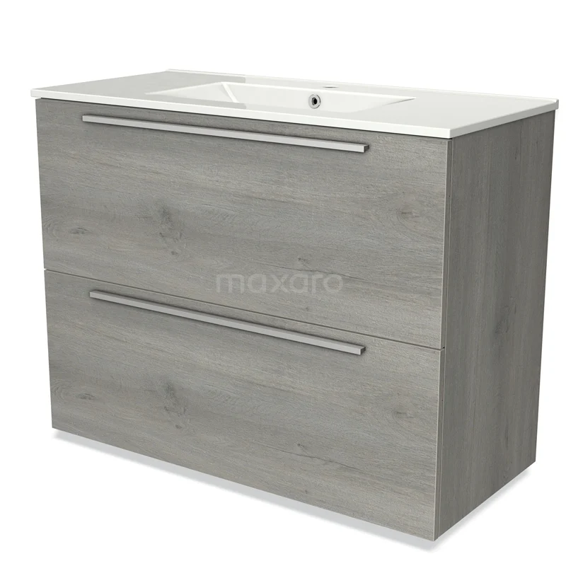 Modulo Bathroom furniture with sink | 100 cm Grey oak Flat front Ceramic 2 stacked drawers under each other