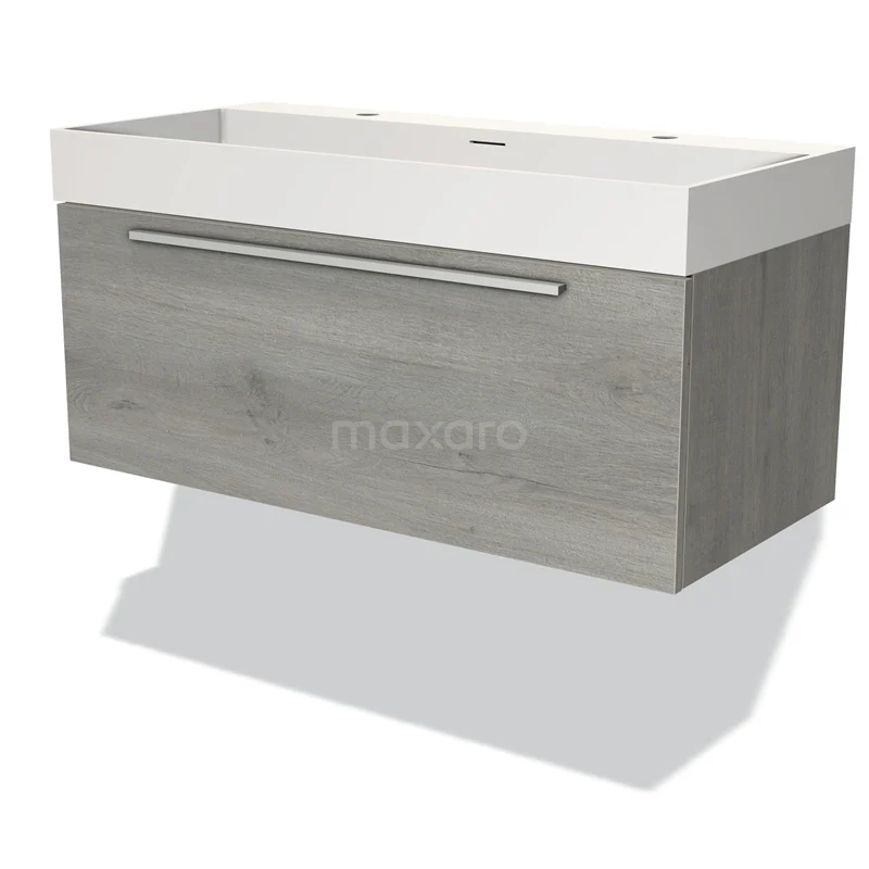 Modulo Bathroom furniture with sink | 100 cm Grey oak Flat front Solid surface 1 drawer