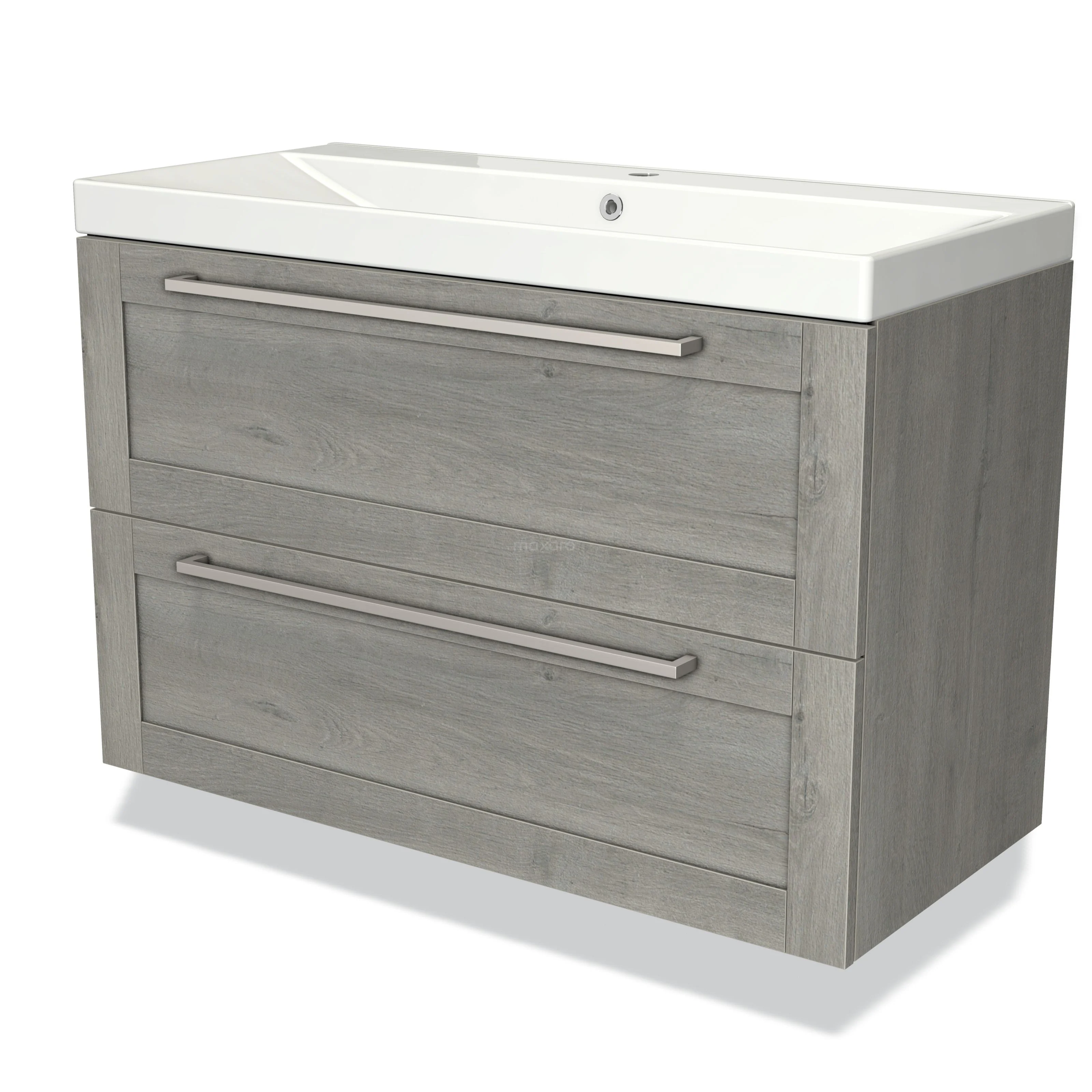 Modulo Bathroom furniture with sink | 100 cm Grey oak Frame front Ceramic 2 Stacked drawers