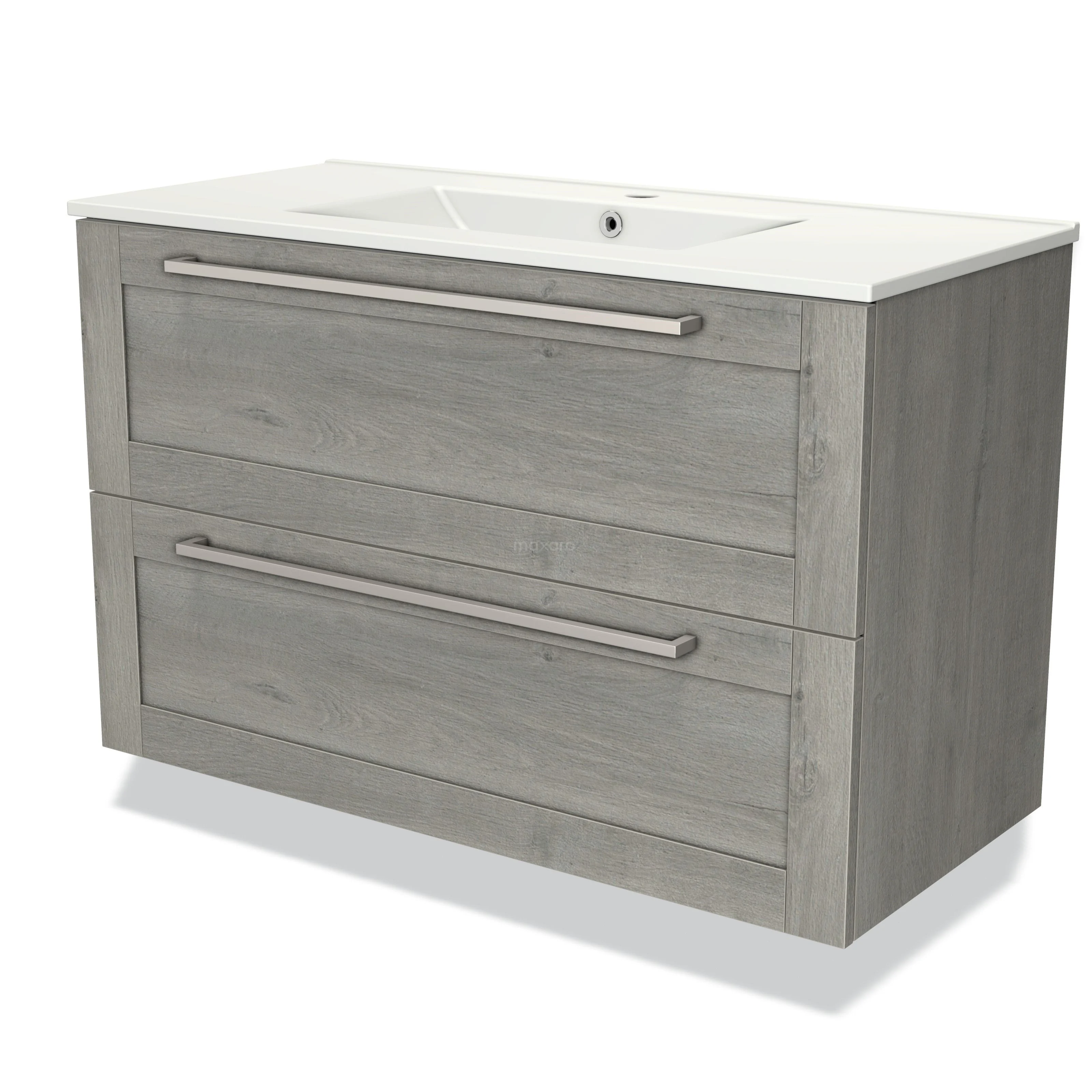 Modulo Bathroom furniture with sink | 100 cm Grey oak Frame front Ceramic 2 Stacked drawers