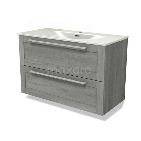 Modulo Bathroom furniture with sink | 100 cm Grey oak Frame front Ceramic 2 Stacked drawers