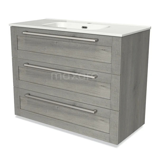 Modulo Bathroom furniture with sink | 100 cm Grey oak Frame front Ceramic 3 drawers