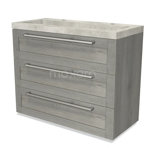 Modulo Bathroom furniture with sink | 100 cm Grey oak Frame front Concrete 3 drawers