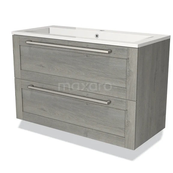 Modulo Bathroom furniture with sink | 100 cm Grey oak Frame front Mineral marble 2 Stacked drawers
