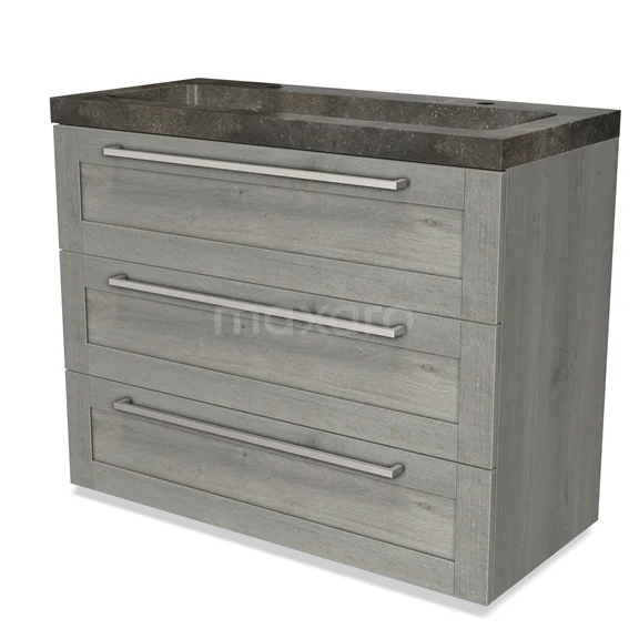 Modulo Bathroom furniture with sink | 100 cm Grey oak Frame front Natural stone 3 drawers