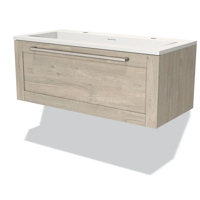 Stylish design The stylish design makes this bathroom unit the eye-catcher of your bathroom. The base cabinet features a framed front and has a grey oak finish. This beautiful oak look is an attractive addition to your bathroom interior. In addition, the framed front provides a classic touch. You will need to joint the handle yourself. It is available in different colours and shapes.