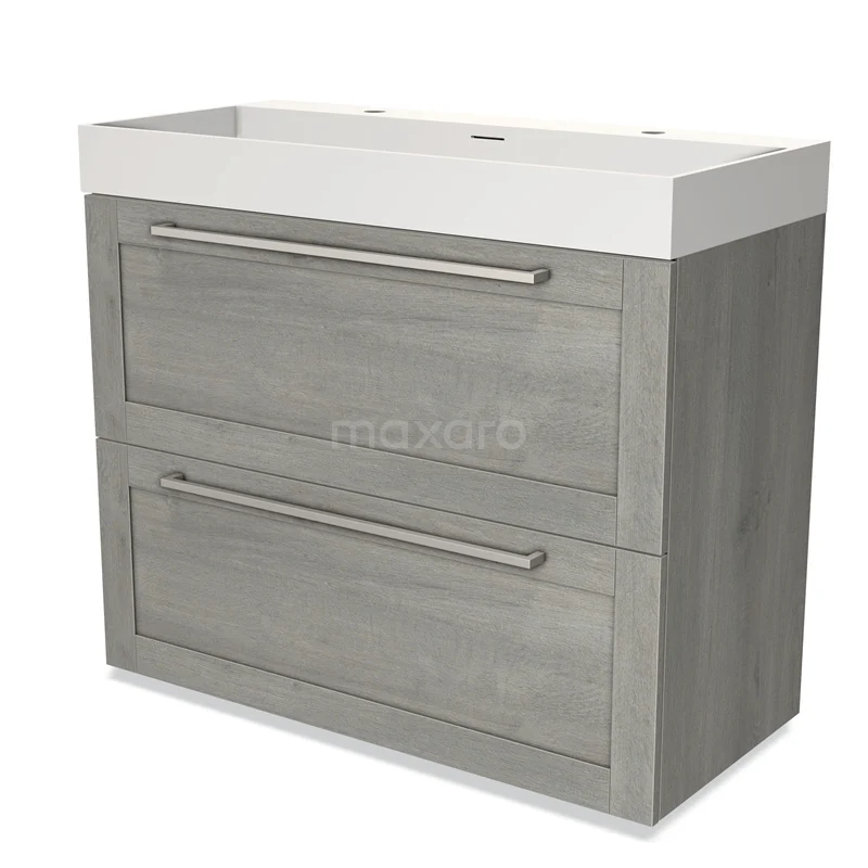 Modulo Bathroom furniture with sink | 100 cm Grey oak Frame front Solid surface 2 stacked drawers under each other