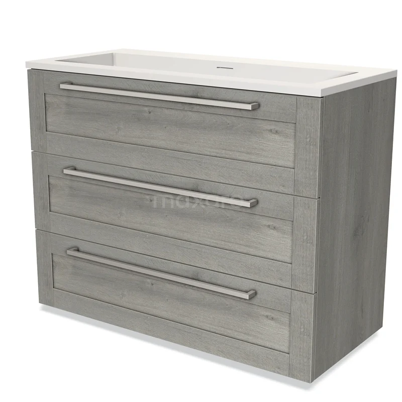 Modulo Bathroom furniture with sink | 100 cm Grey oak Frame front Solid surface 3 drawers