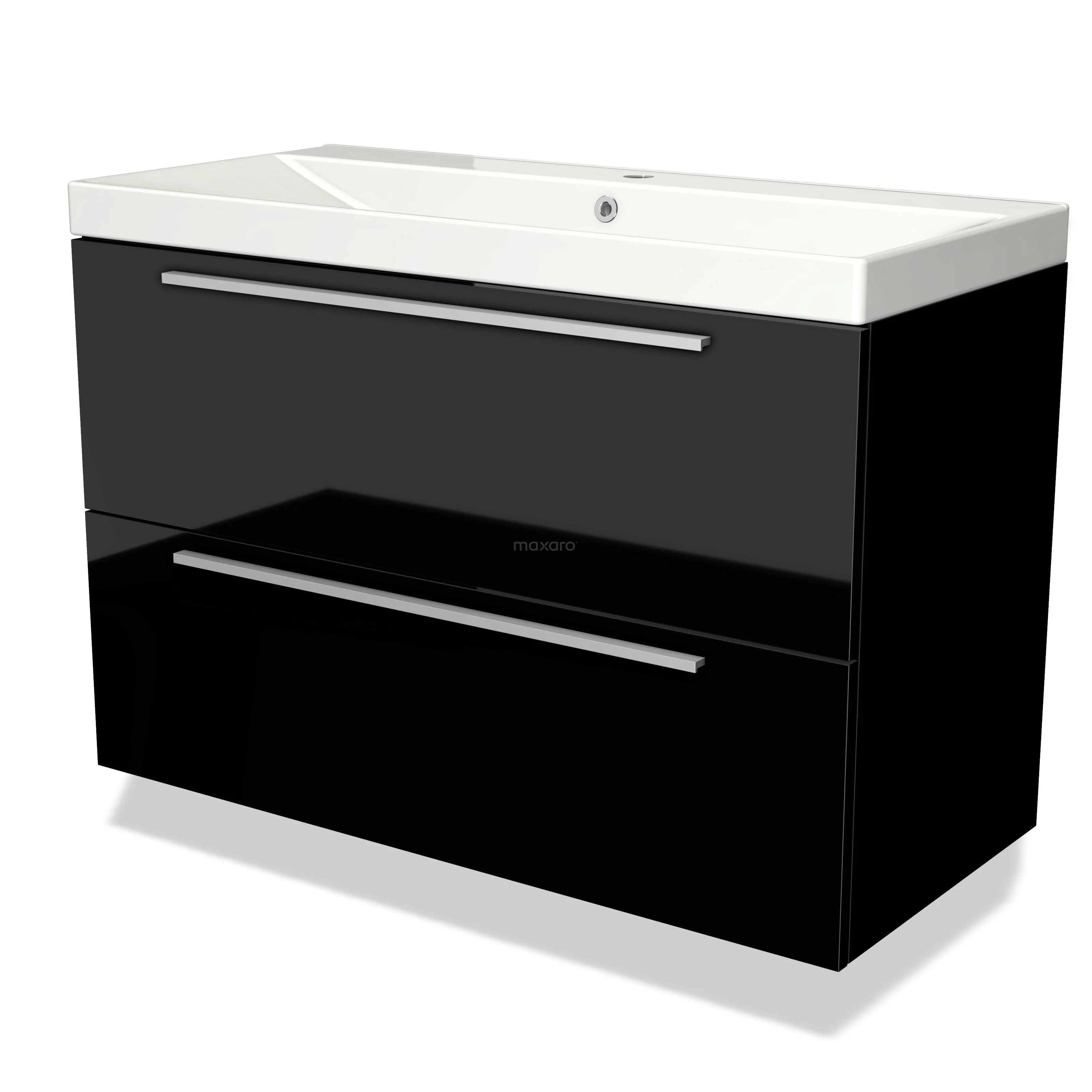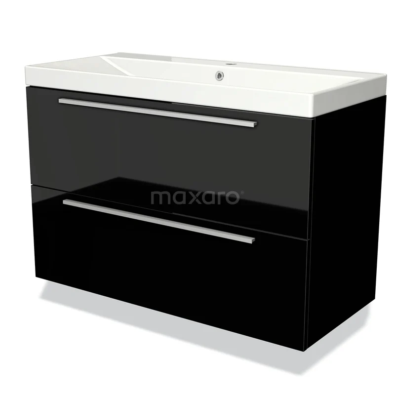 Modulo Bathroom furniture with sink | 100 cm High-gloss black Flat front Ceramic 2 Stacked drawers