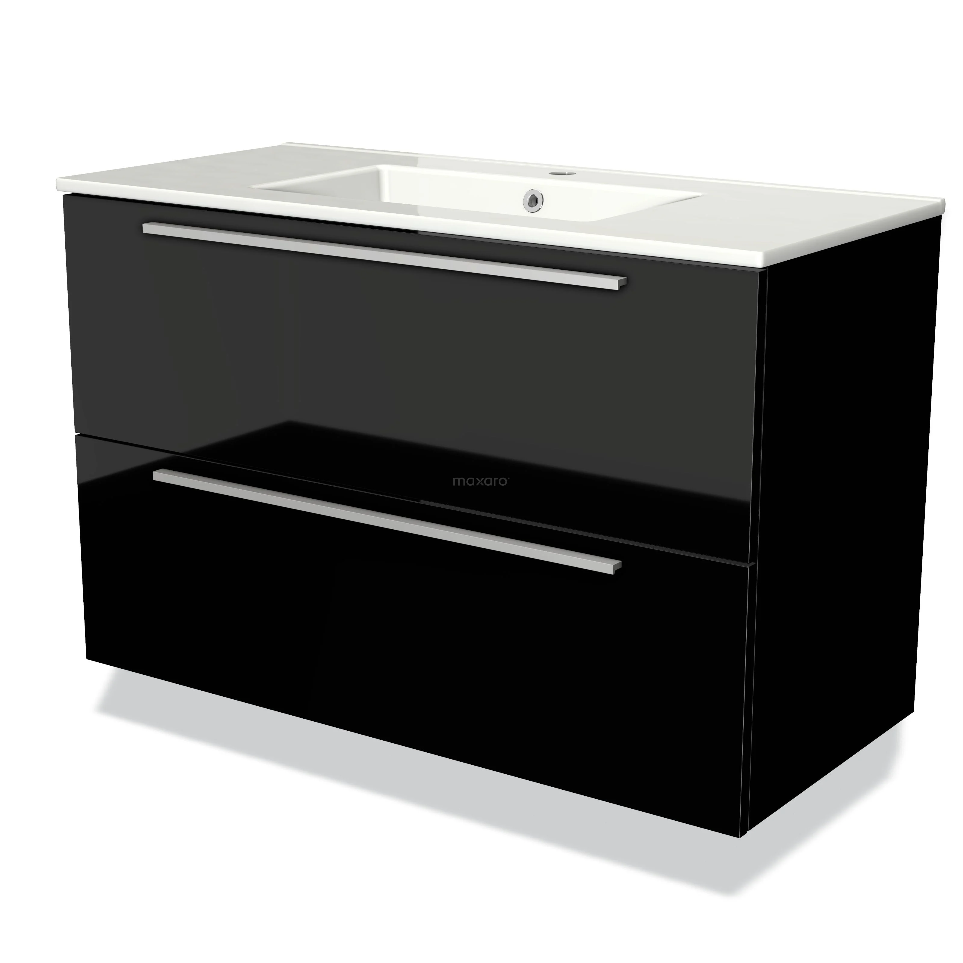 Modulo Bathroom furniture with sink | 100 cm High-gloss black Flat front Ceramic 2 Stacked drawers