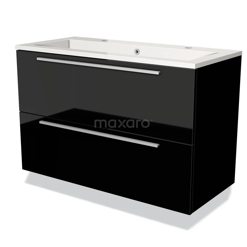 Stylish design The stylish design makes this bathroom unit the eye-catcher of your bathroom. The base cabinet features a flat front and has a high-gloss black finish. This colour creates a cool look-and-feel and is ideal for adding a striking accent to the interior. In addition, the flat front provides a timeless touch. You will need to joint the handles yourself. These are available in different colours and shapes.