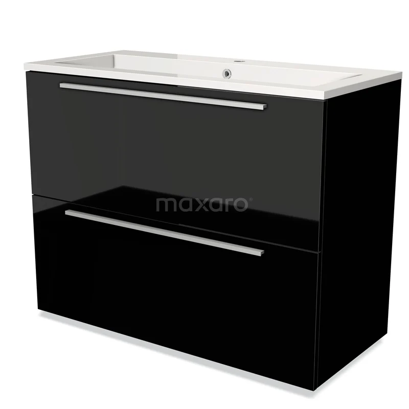 Stylish design The stylish design makes this bathroom unit the eye-catcher of your bathroom. The base cabinet features a flat front and has a high-gloss black finish. This colour creates a cool look-and-feel and is ideal for adding a striking accent to the interior. In addition, the flat front provides a timeless touch. You will need to joint the handles yourself. These are available in different colours and shapes.