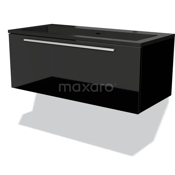 Modulo Bathroom furniture with sink | 100 cm High-gloss black Flat front Quartz 1 drawer