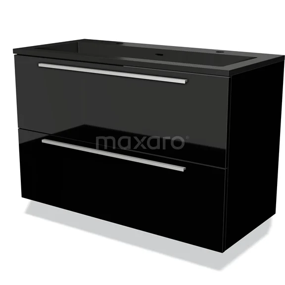 Modulo Bathroom furniture with sink | 100 cm High-gloss black Flat front Quartz 2 Stacked drawers