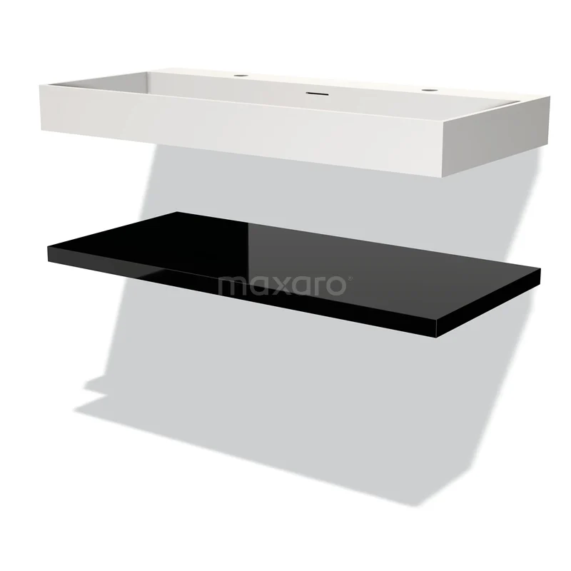Modulo Bathroom furniture with sink | 100 cm High-gloss black front Solid surface Basin with worktop