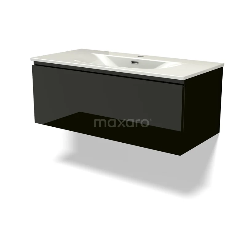Modulo Bathroom furniture with sink | 100 cm High-gloss black Handle-less front Ceramic 1 drawer