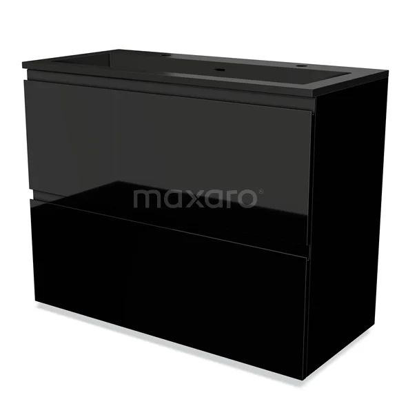 Modulo Bathroom furniture with sink | 100 cm High-gloss black Handle-less front Quartz 2 stacked drawers under each other