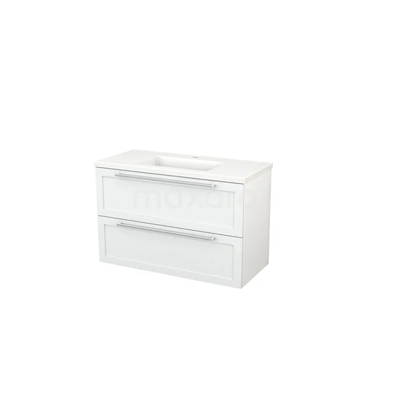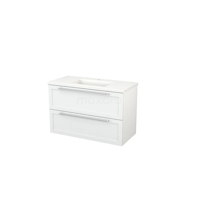 Modulo+ Bathroom furniture with sink | 100 cm High-gloss white Bordered front Ceramic 2 Stacked drawers