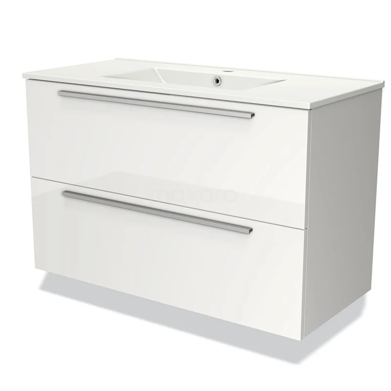 Modulo Bathroom furniture with sink | 100 cm High-gloss white Flat front Ceramic 2 Stacked drawers