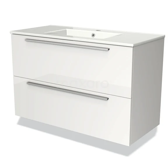 Modulo Bathroom furniture with sink | 100 cm High-gloss white Flat front Ceramic 2 Stacked drawers