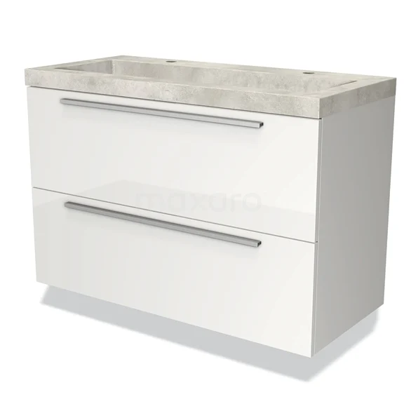 Modulo Bathroom furniture with sink | 100 cm High-gloss white Flat front Concrete 2 Stacked drawers