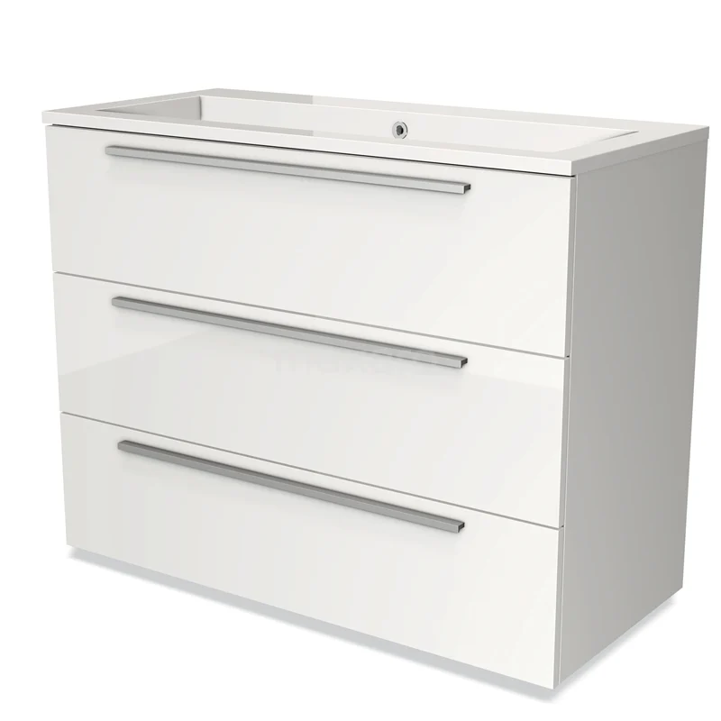 Modulo Bathroom furniture with sink | 100 cm High-gloss white Flat front Mineral marble 3 drawers