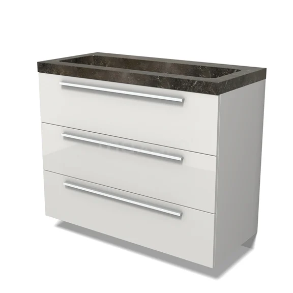Modulo Bathroom furniture with sink | 100 cm High-gloss white Flat front Natural stone 3 drawers