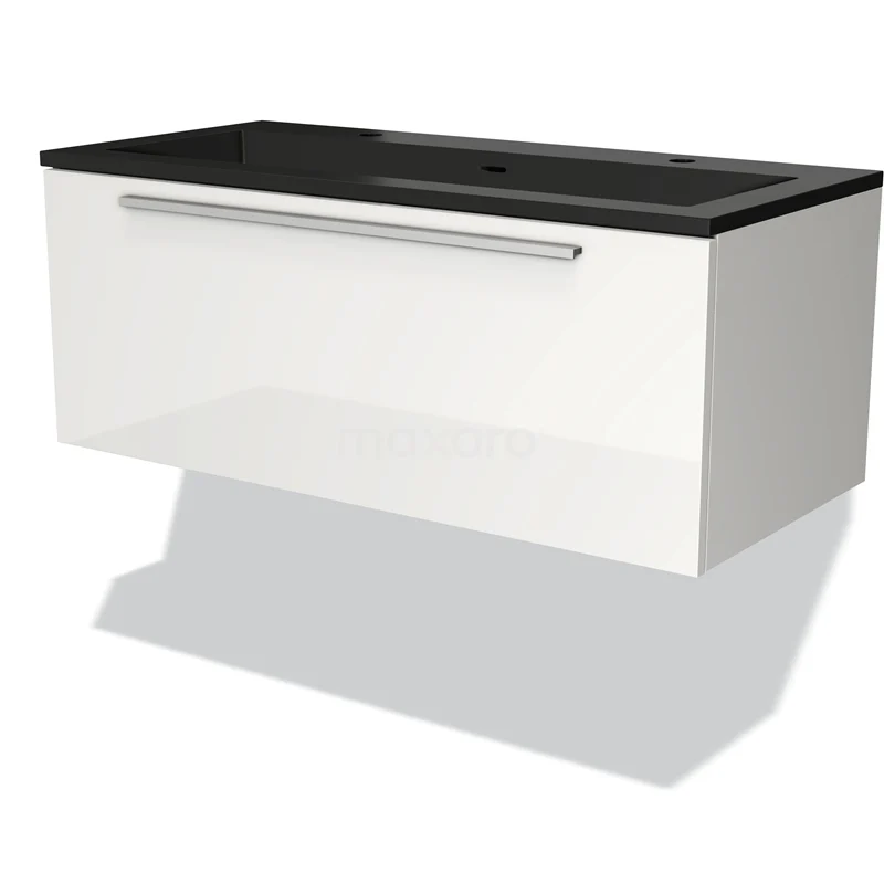 Modulo Bathroom furniture with sink | 100 cm High-gloss white Flat front Quartz 1 drawer