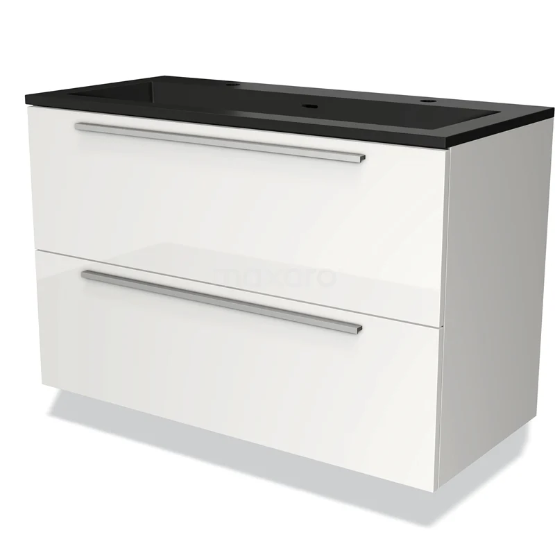 Modulo Bathroom furniture with sink | 100 cm High-gloss white Flat front Quartz 2 Stacked drawers