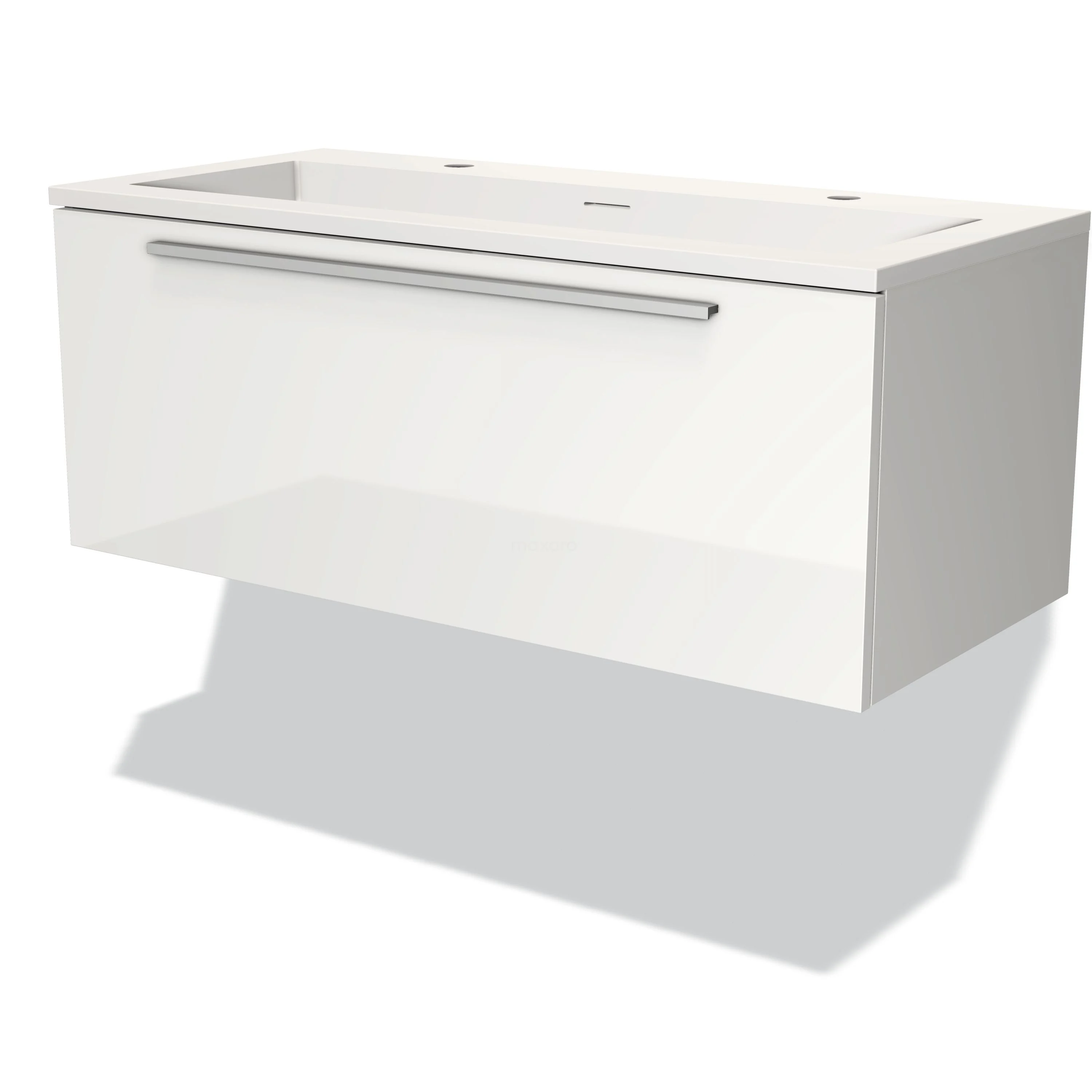 Modulo Bathroom furniture with sink | 100 cm High-gloss white Flat front Solid surface 1 drawer