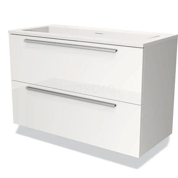 Modulo Bathroom furniture with sink | 100 cm High-gloss white Flat front Solid surface 2 Stacked drawers