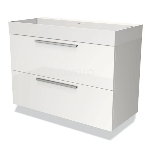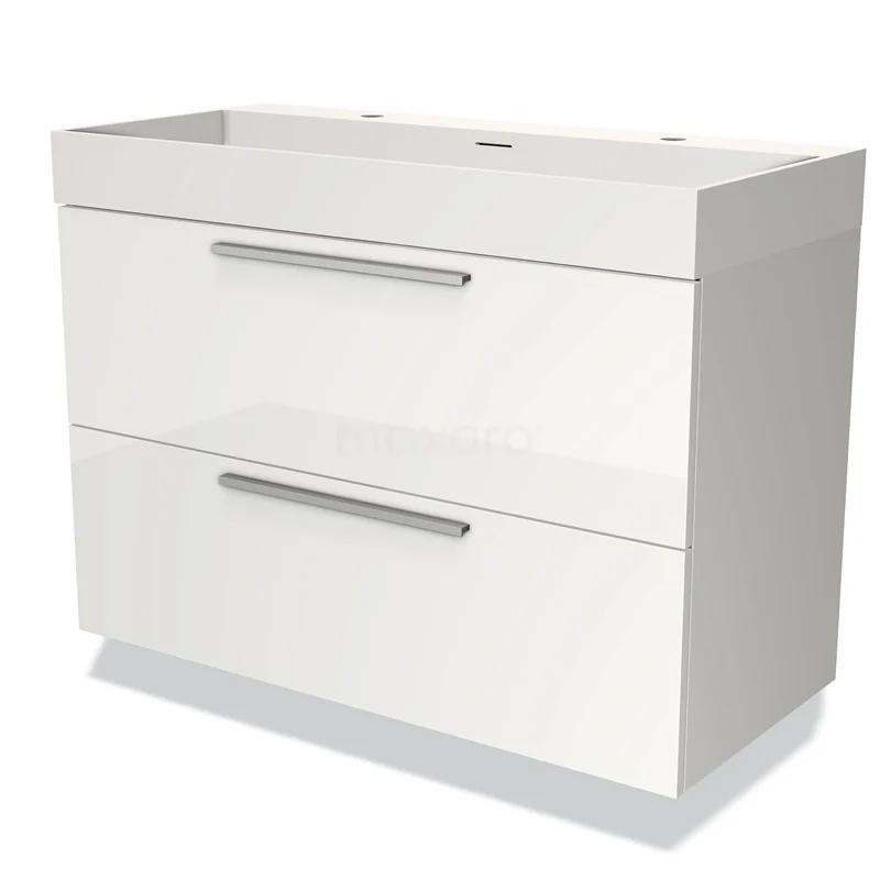 Modulo Bathroom furniture with sink | 100 cm High-gloss white Flat front Solid surface 2 Stacked drawers