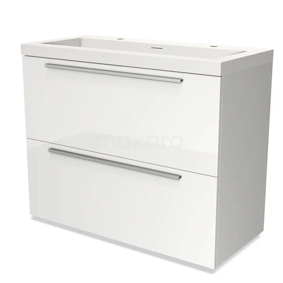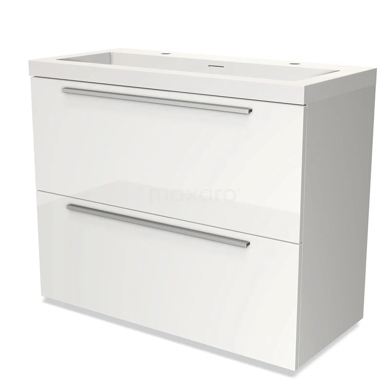Modulo Bathroom furniture with sink | 100 cm High-gloss white Flat front Solid surface 2 stacked drawers under each other