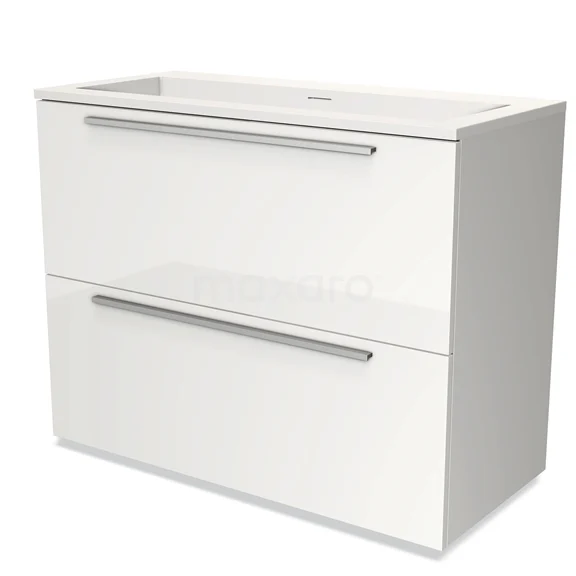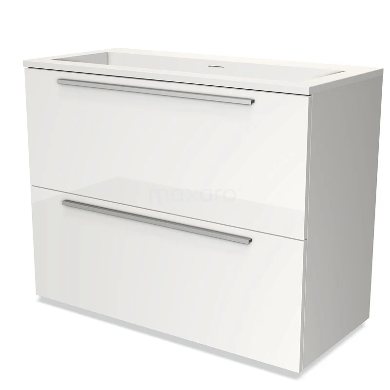 Modulo Bathroom furniture with sink | 100 cm High-gloss white Flat front Solid surface 2 stacked drawers under each other