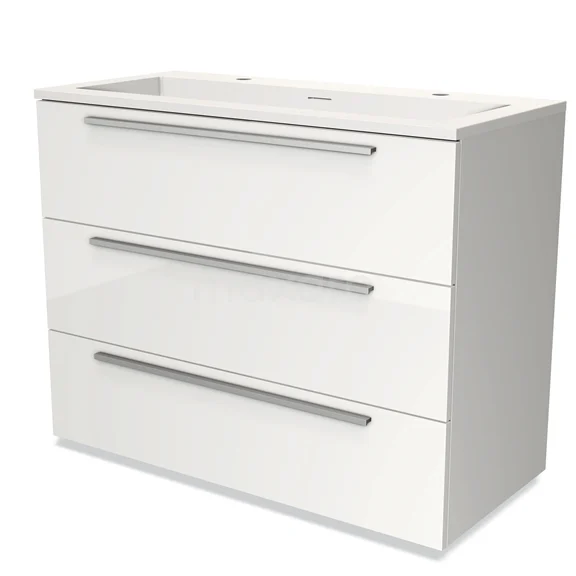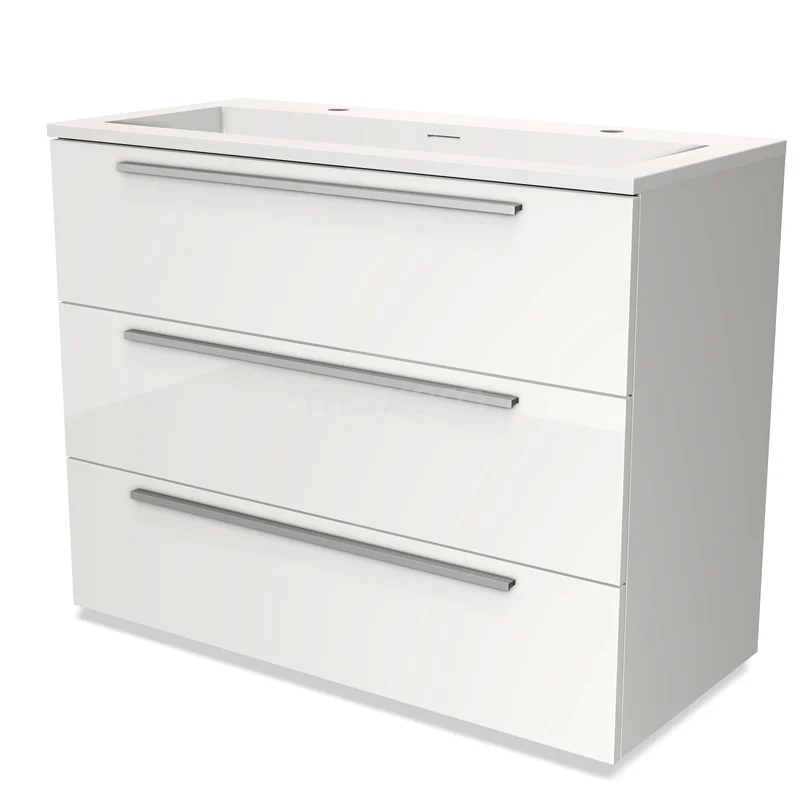 Modulo Bathroom furniture with sink | 100 cm High-gloss white Flat front Solid surface 3 drawers