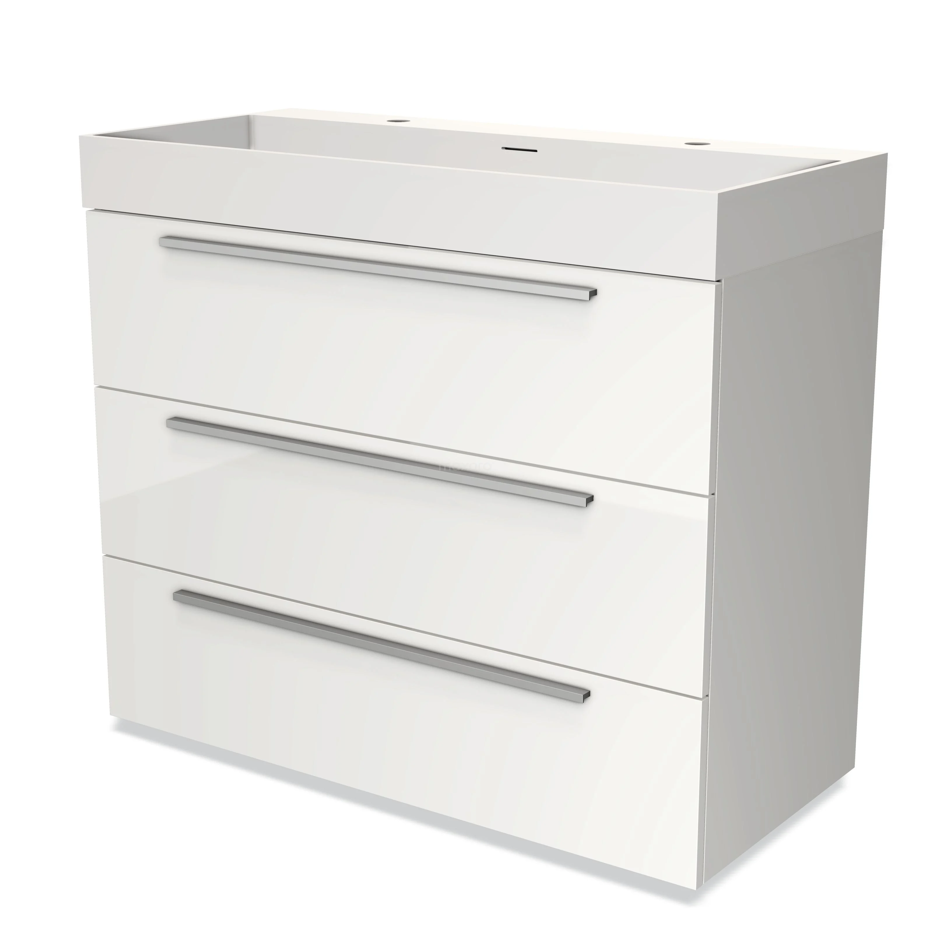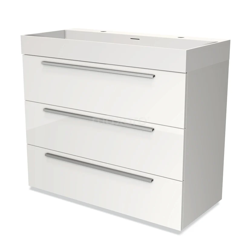 Modulo Bathroom furniture with sink | 100 cm High-gloss white Flat front Solid surface 3 drawers