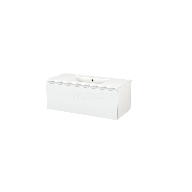 Modulo+ Bathroom furniture with sink | 100 cm High-gloss white Handle-less front Ceramic 1 drawer