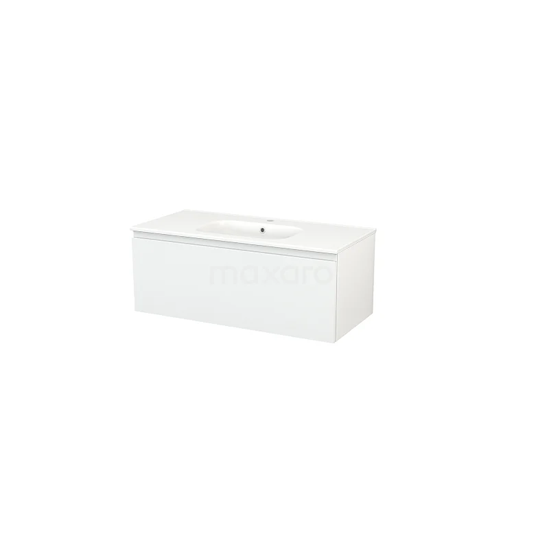 Modulo+ Bathroom furniture with sink | 100 cm High-gloss white Handle-less front Ceramic 1 drawer