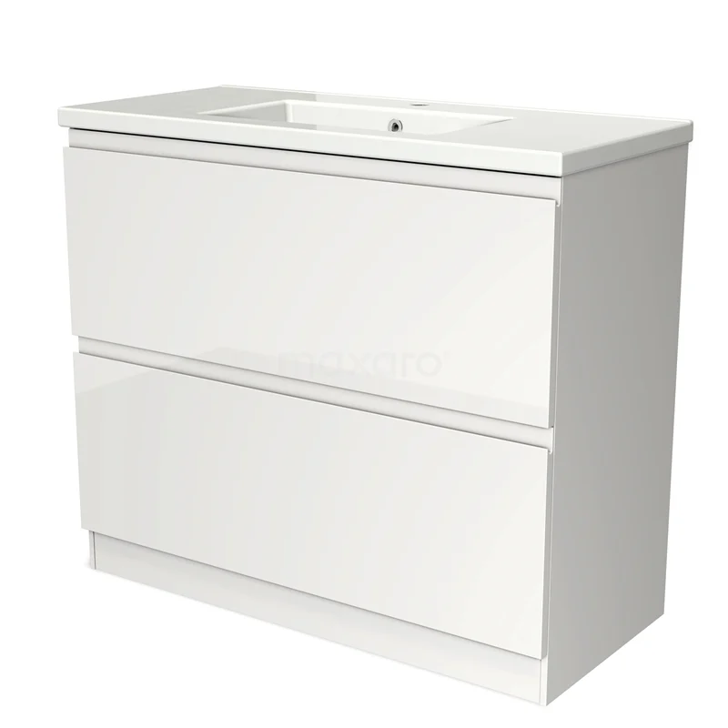 Modulo Bathroom furniture with sink | 100 cm High-gloss white Handle-less front Ceramic 2 high drawers standing drawers under each other