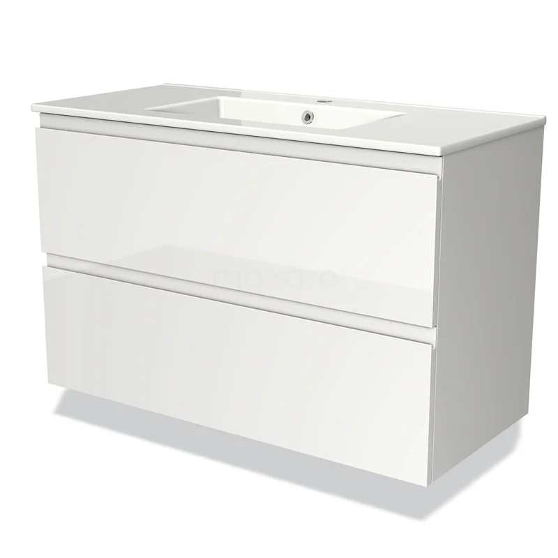 Modulo Bathroom furniture with sink | 100 cm High-gloss white Handle-less front Ceramic 2 Stacked drawers