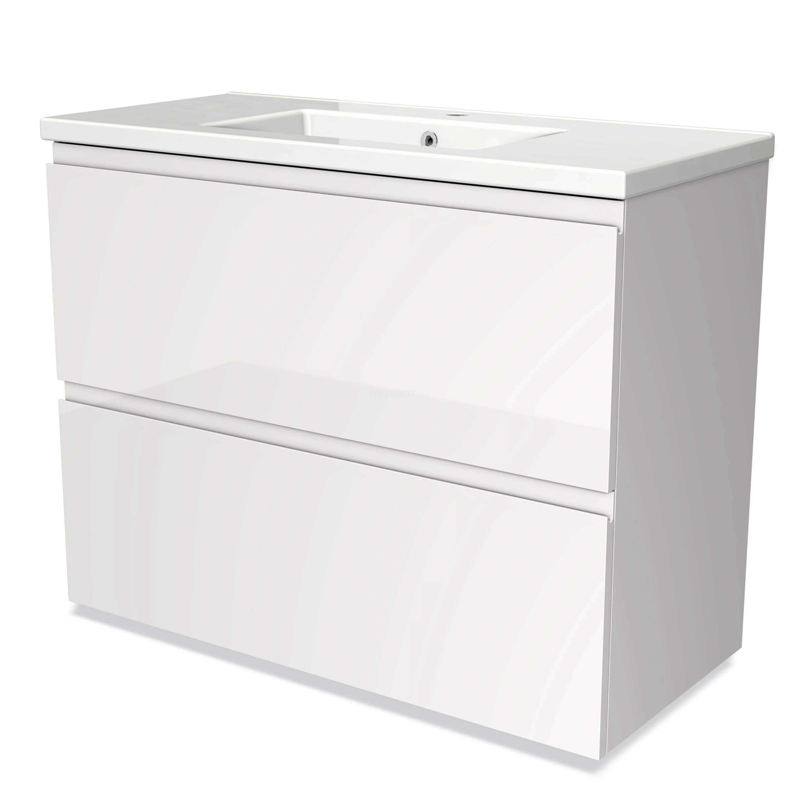 Modulo Bathroom furniture with sink | 100 cm High-gloss white Handle-less front Ceramic 2 stacked drawers under each other
