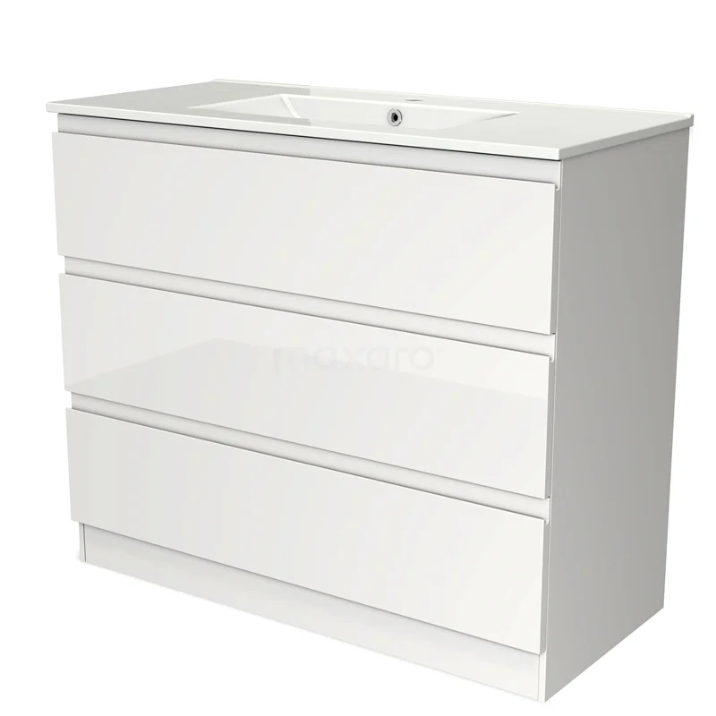 Modulo Bathroom furniture with sink | 100 cm High-gloss white Handle-less front Ceramic 3 standing drawers