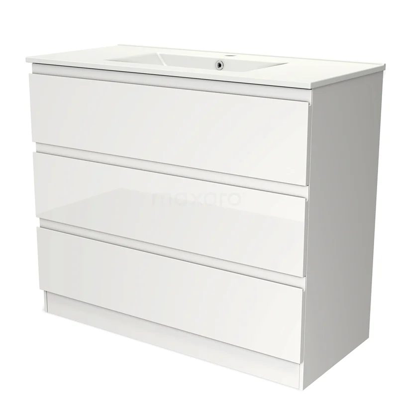 Modulo Bathroom furniture with sink | 100 cm High-gloss white Handle-less front Ceramic 3 standing drawers